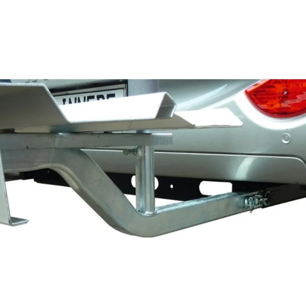 Suport pentru motocicleta sau scuter Porto, sarcina max 150 kg. Acest model are o greutate de 41 kg si adauga la lungimea autovehicolului doar 65 cm. Este compatibil cu toate autorulotele cu sasiu extins sau sasiu ALKO. Suportul este omologat CE si include rampa pentru incarcarea / descarcarea motocicletei. Dupa instalarea initiala la un service, acesta se poate monta sai demonta usor. Pachetul nu include conexiunea electrica la autovehicol..